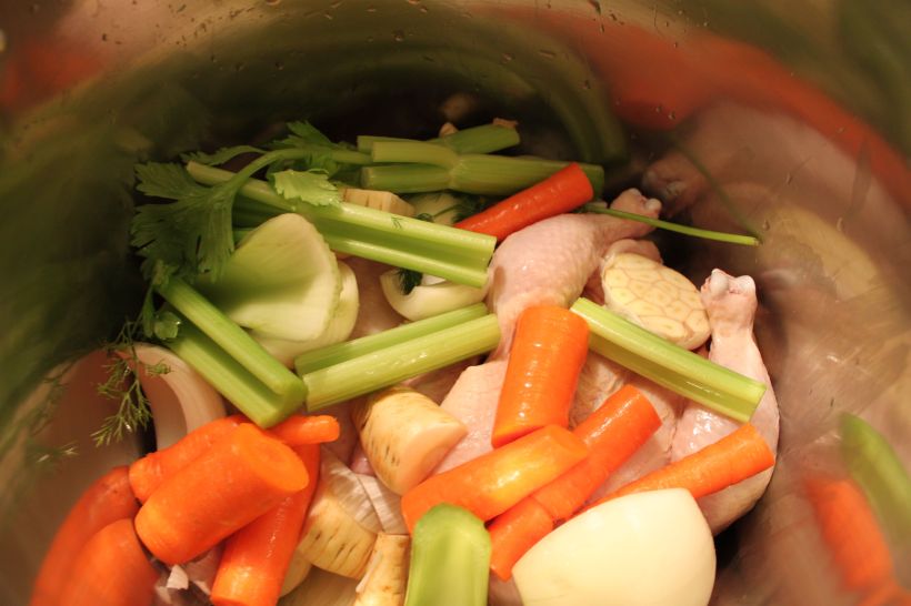 For my first recipe, I decided to go with a staple – chicken stock. While I use canned or boxed chicken stock as default, home made always tastes better. Also, my caring instincts kicked in when J got sick and chicken soup has magical curing powers (it’s science), so it all fell into place.