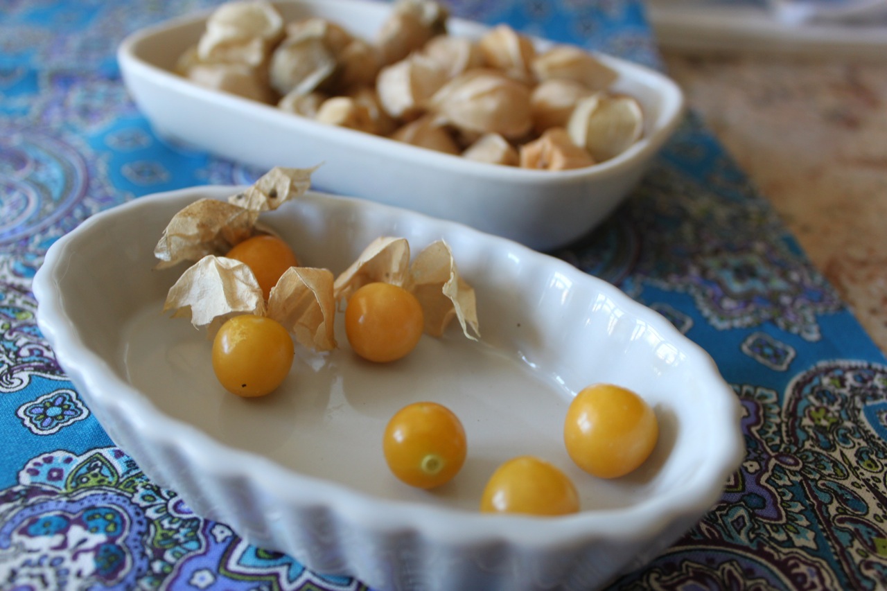 Found a new item at the farmers market – ground cherries. They look like mini tomatillos with paper skin around them, have the texture of cherry tomatoes, but taste a little sweet with a slight grapefruit flavor. I just ate them plain, they were so good as a snack.