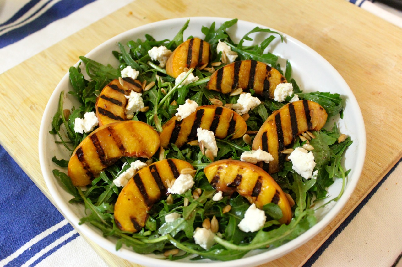 Then put it all together. Tip: dress the the arugula first, then top with peaches, goat cheese and sunflower seeds. Serve with extra dressing on the side. Continue reading