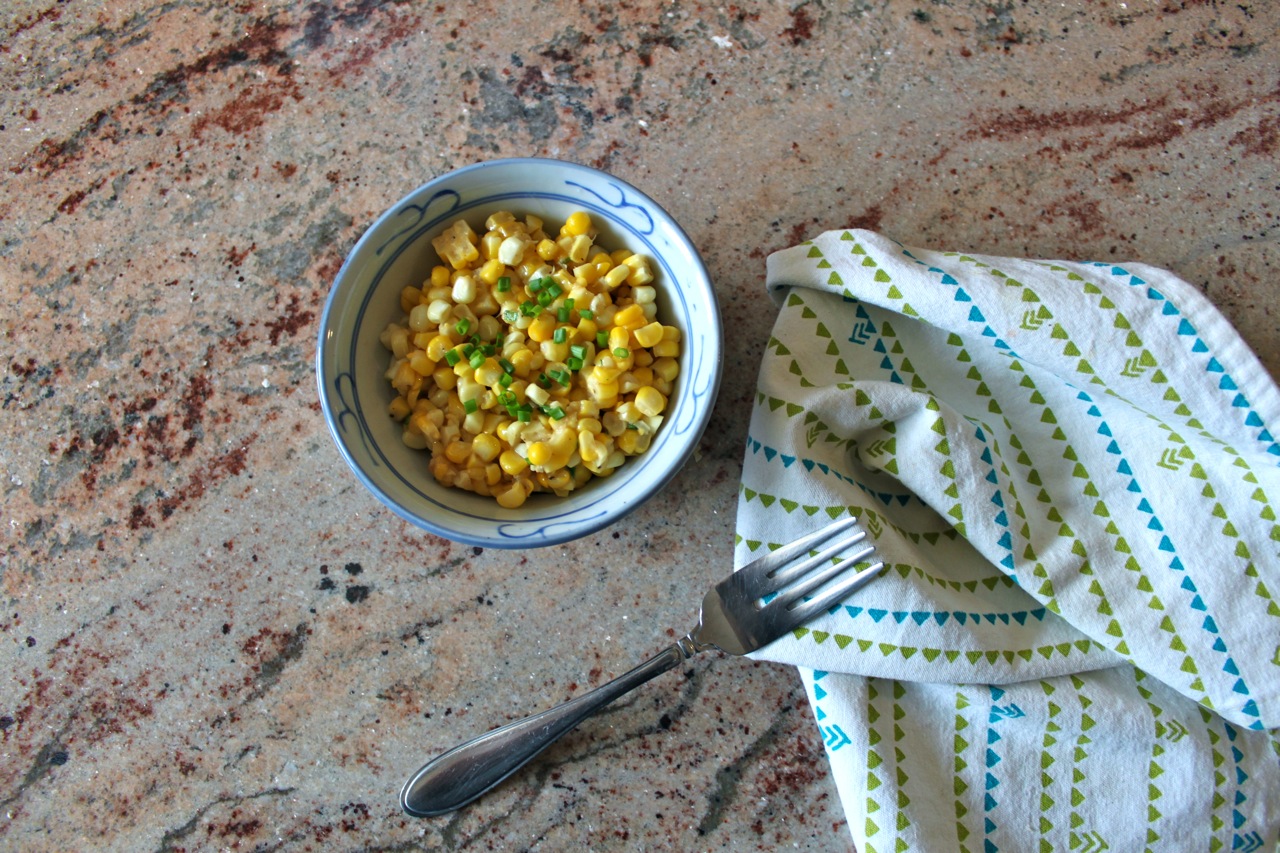 Once corn is heated through, remove from heat and pour into bowl. Top with extra chives and serve. This dish is good hot or at room temp. Enjoy!